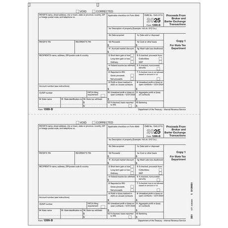 Form 1099-B Proceeds from Broker and Barter Exchange Transactions - Copy 1 State - 25 Qty