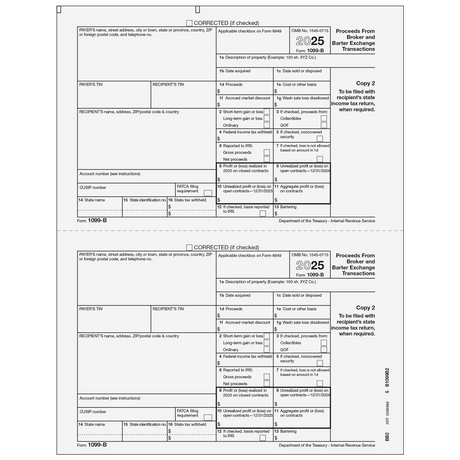 Regular price $3.84Unit price /UnavailableForm 1099-B Proceeds From Broker and Barter Exchange Transactions - Copy B Recipient - 25 Qty