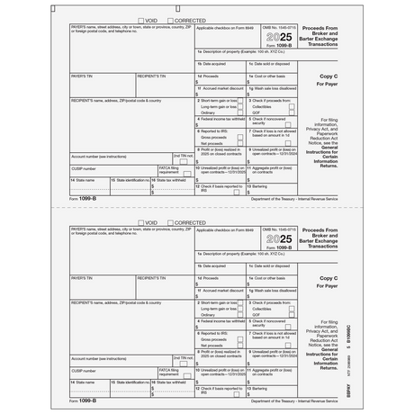 Regular price $3.84Unit price /UnavailableForm 1099-B Proceeds From Broker and Barter Exchange Transactions - Copy C Payer - 25 Qty