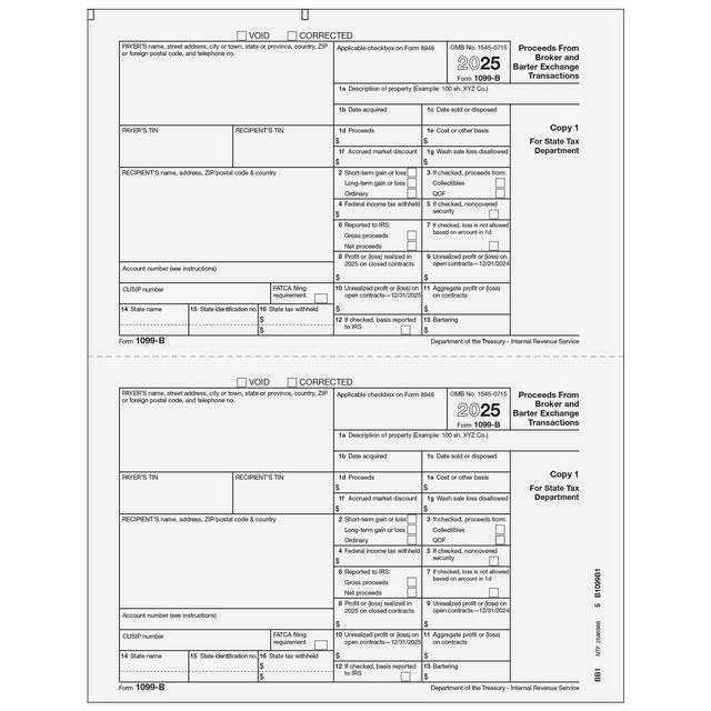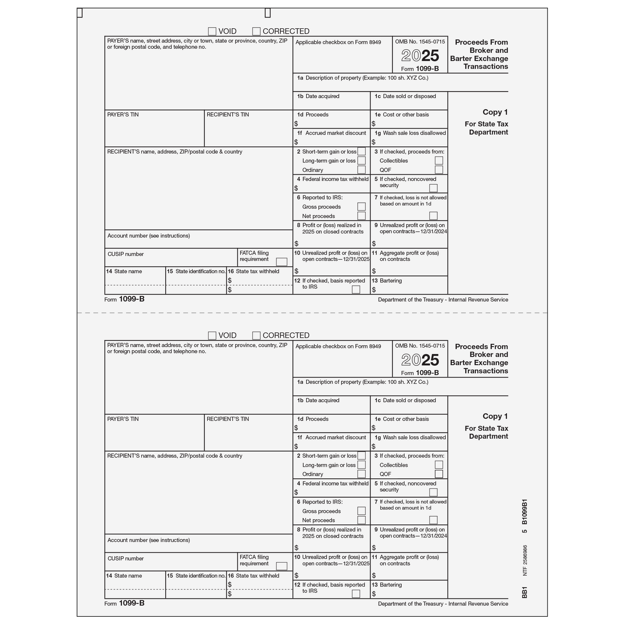 Form 1099-B Proceeds from Broker and Barter Exchange Transactions - Copy 1 State - 25 Qty