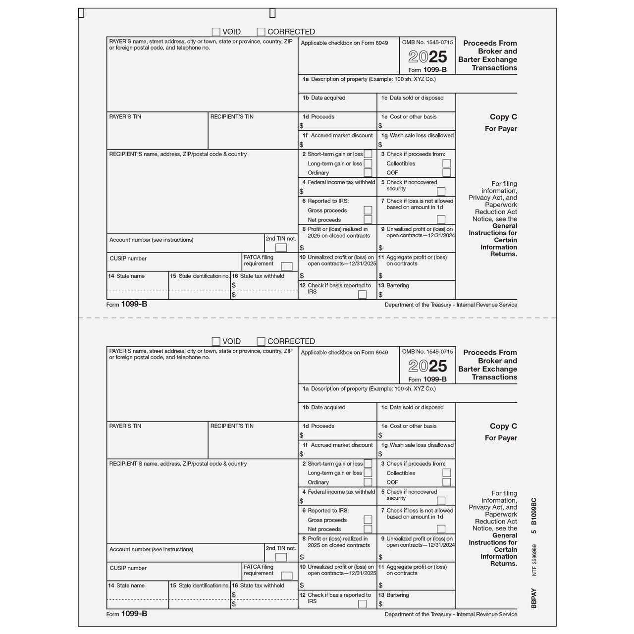 Form 1099-B Proceeds From Broker and Barter Exchange Transactions - Copy C Payer - 25 Qty