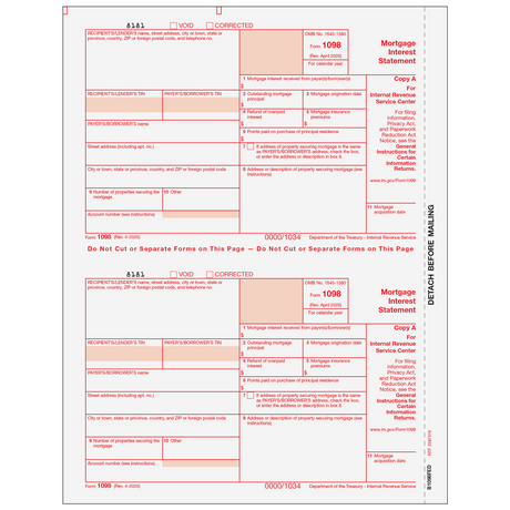 Regular price $0.00Unit priceForm 1098 Mortgage Interest Statement - Copy C Recipient/Lender