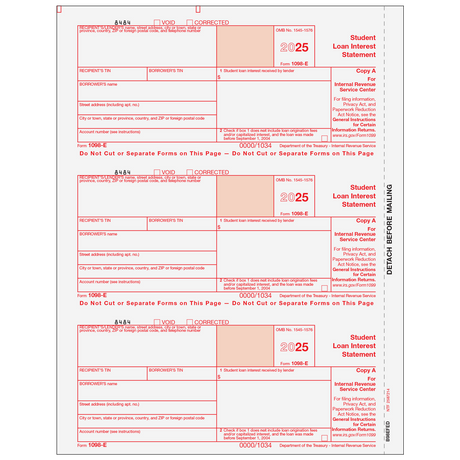 Regular price $0.00Unit priceForm 1098-E Student Loan Interest Statement - Copy C Recipient/Lender