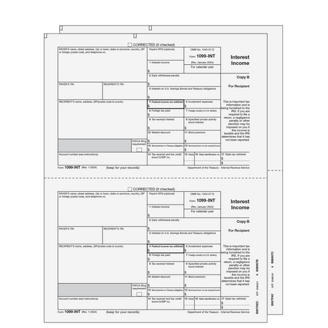 Regular price $23.40Unit price /Unavailable1099-INT Interest Income - 2-Part E-file Set (Preprinted)