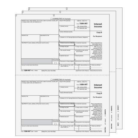 Regular price From $23.40Unit price /Unavailable1099-INT Interest Income - 3-Part E-file Set (Preprinted)