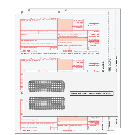 Regular price $31.20Unit price /Unavailable1099-NEC Non-Employee Compensation Preprinted 4-part Kit (with Tamper Evident Envelopes) - 25 Qty