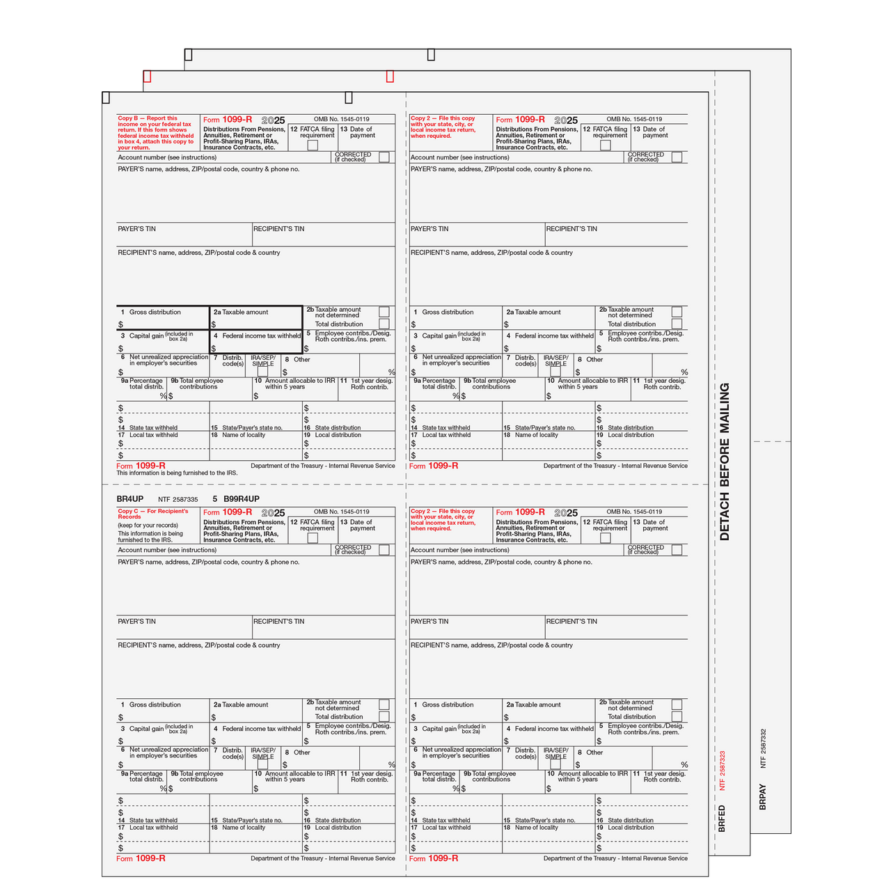 - Preprinted Copies B/2/C/2 (recipient/recipient state/recipient file/recipient state) on a 4up quadrant-style perforated sheet