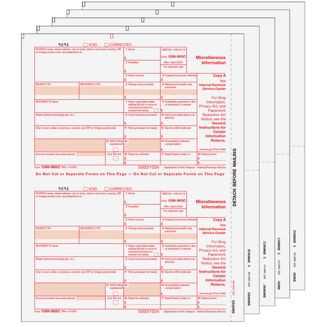 1099 Miscellaneous Information - 5-part Set (Preprinted) - 25 Qty is backordered and will ship as soon as it is back in stock.