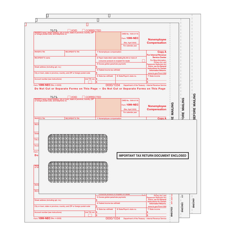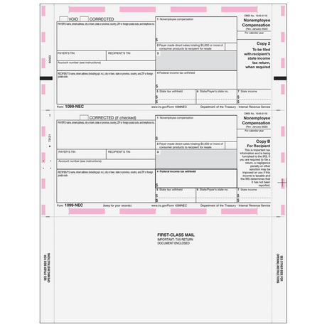 Regular price $3.84Unit price /UnavailablePressure Seal 1099-NEC Form - Z Fold Recipient (Copies B, 2) - 500 Qty