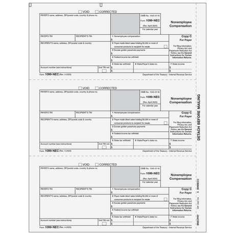 Regular price $68.10Unit price /Unavailable1099-NEC Non-Employee Compensation - Copy C Payer - 25 Qty