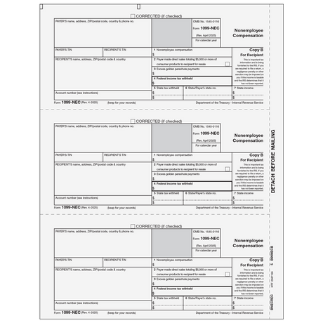 Regular price $28.14Unit price /Unavailable1099-NEC Non-Employee Compensation - Recipient Copies B/2 - 25 Qty