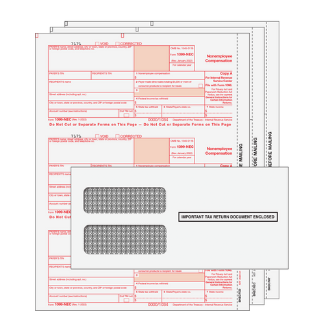 Regular price $36.90Unit price /Unavailable1099-NEC Non-Employee Compensation Preprinted 3-Part Kit (with Moisture Seal Envelopes) - 25 Qty