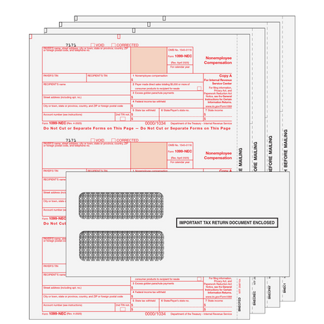 Regular price $247.50Unit price /Unavailable1099-NEC Preprinted 5-part Kit (with Self Seal Envelopes) - 25 Qty