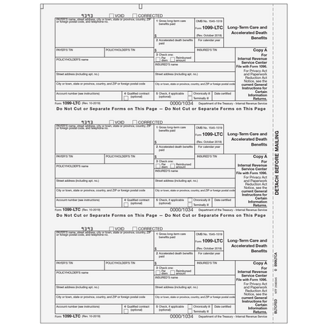 Regular price $276.50Unit price /UnavailableForm 1099-LTC Long Term Care and Accelerated Death Benefits - Copy A Federal - 25 Qty
