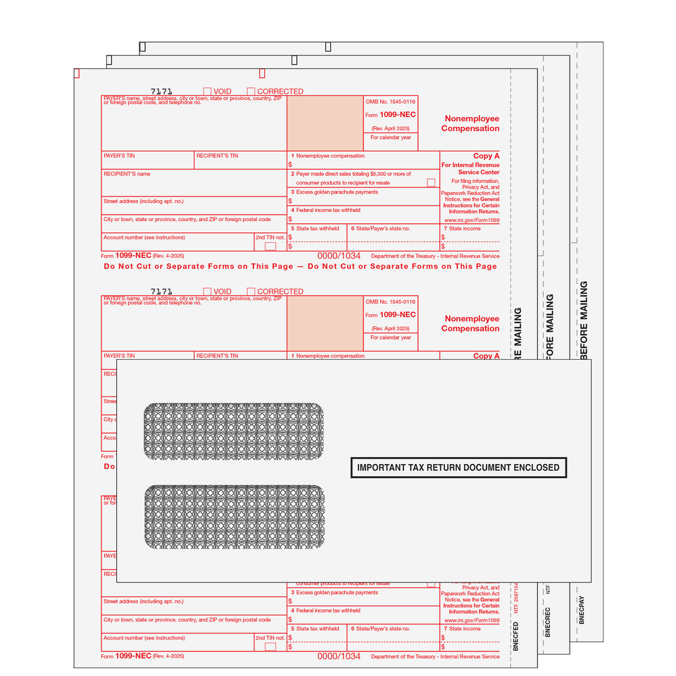 1099-NEC Preprinted 3-part Kit (with Self Seal Envelopes) - 25 Qty