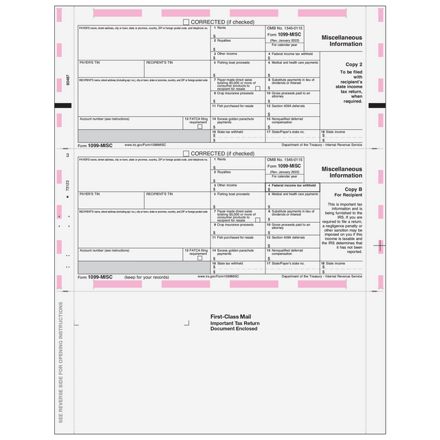 Miscellaneous Information. Each sheet contains recipient Copy 2, B and instructions on the back of Copy B, in the middle. Use your pressure seal equipment to print, fold and seal, no envelope needed. Check your software for compatibility with pressure seal forms. This is a Z fold form, all your printing goes on one side. Order by number of sheets.