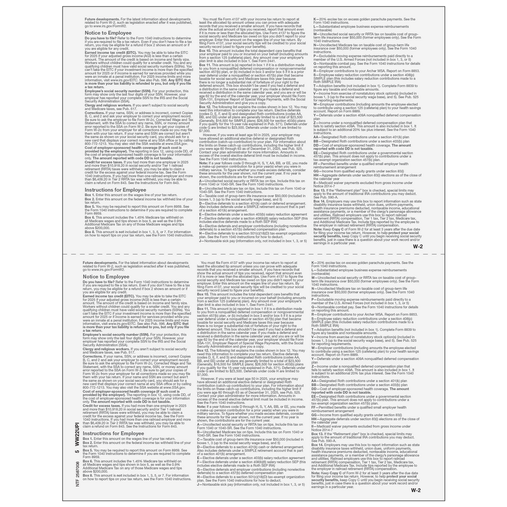 2up Blank W-2 Form (with Employee Instructions) - 25 Qty is backordered and will ship as soon as it is back in stock.