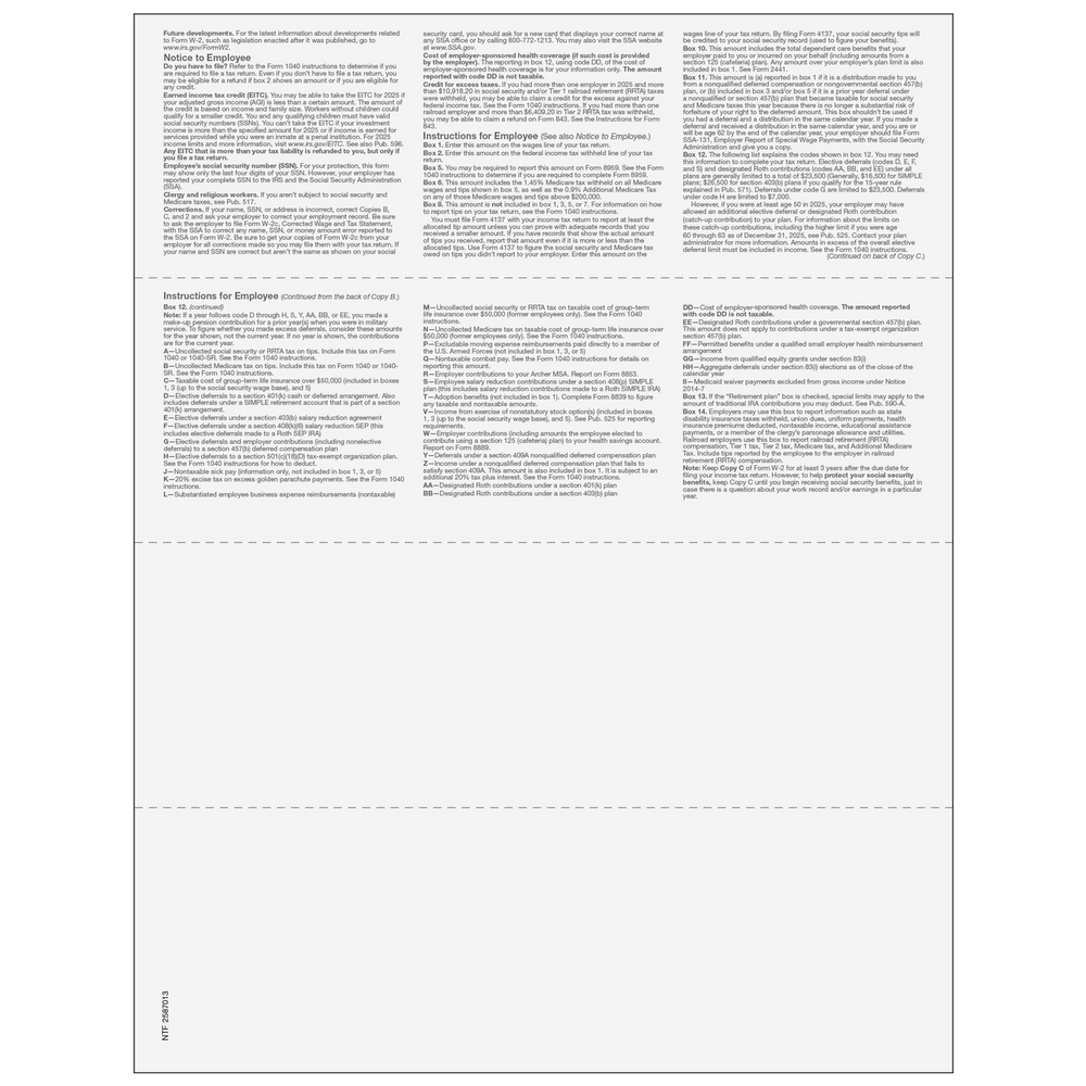 4up Blank W-2 Form - Horizontal (with Employee Instructions) - 25 Qty is backordered and will ship as soon as it is back in stock.