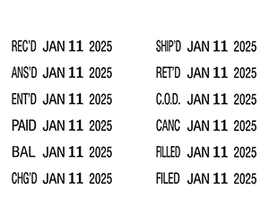 Heavy-Duty Dater Stamp - Date and 12 Phrase Stamp 3/16" x 1-3/4" Impression -Black is backordered and will ship as soon as it is back in stock.