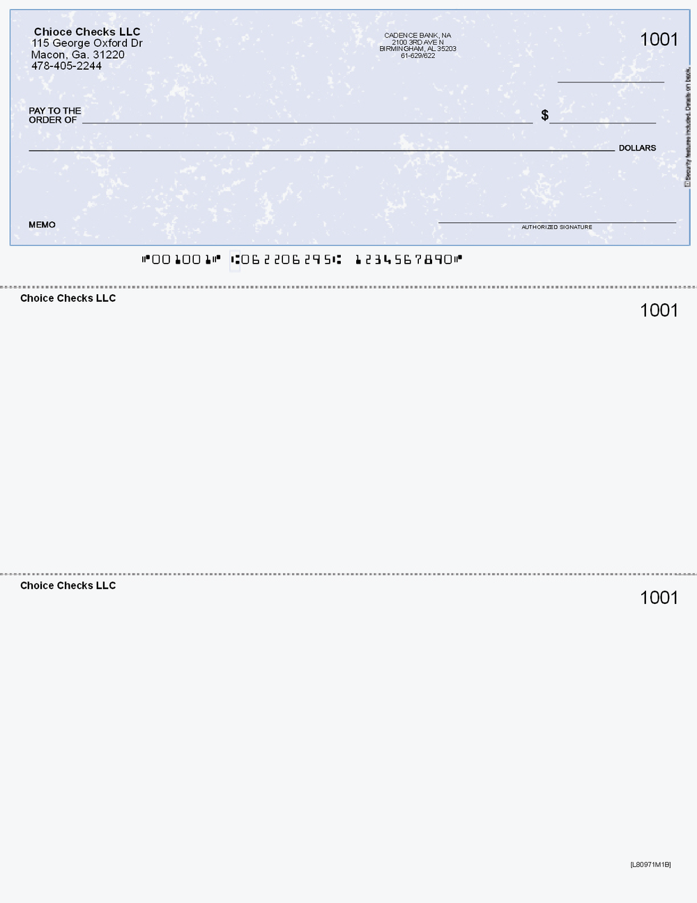 Marble Imprinted Business Checks on Top - Better Security - 250 Qty / Marble Blue is backordered and will ship as soon as it is back in stock.
