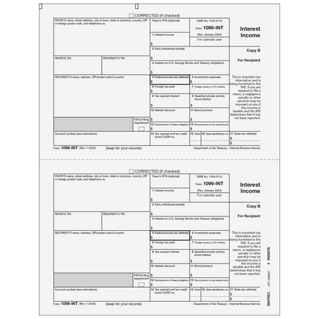 Regular price $0.00Unit price1099-INT Interest Income - 4-Part Set (Preprinted)