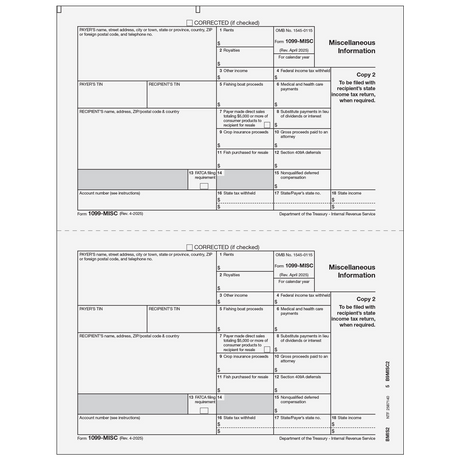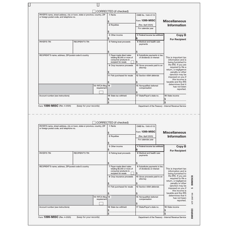 Regular price $0.00Unit price1099-MISC Miscellaneous Information - Recipient Copies B/2