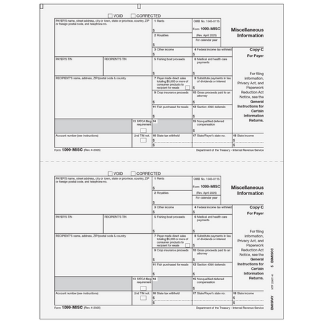 Regular price $0.00Unit price1099-MISC Miscellaneous Information - Payer Copy C