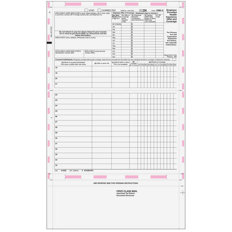 Regular price $7.65Unit price /UnavailableForm 1095-C - Preprinted Full Page (Recipient Copy) - 25 Qty