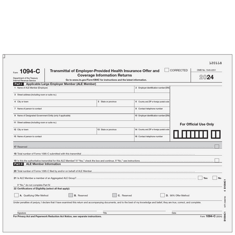 Regular price $10.95Unit price /UnavailableForm 1095-C - Employer Provided Health Insurance Offer and Coverage (2-part Kit) - 25 Qty