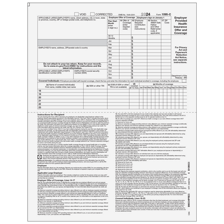 Regular price $7.59Unit price /UnavailableForm 1095-C - Employer Provided Health Insurance Offer and Coverage (Covered Individuals) - 25 Qty