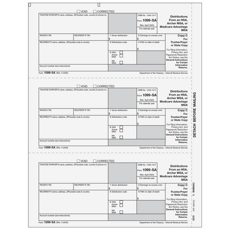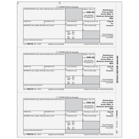 Regular price $3.84Unit price /UnavailableForm 5498-SA HSA, Archer MSA, or Medicare Advantage MSA Information Copy C Trustee - 25 Qty