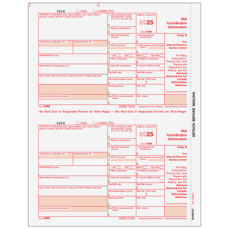 Regular price $3.84Unit price /UnavailableForm 5498 IRA Contribution Information Copy A Federal - 25 Qty