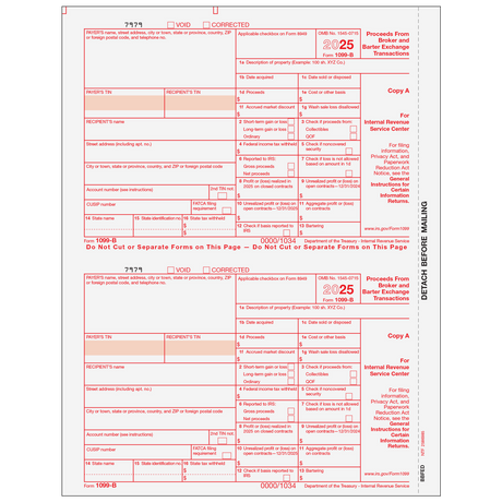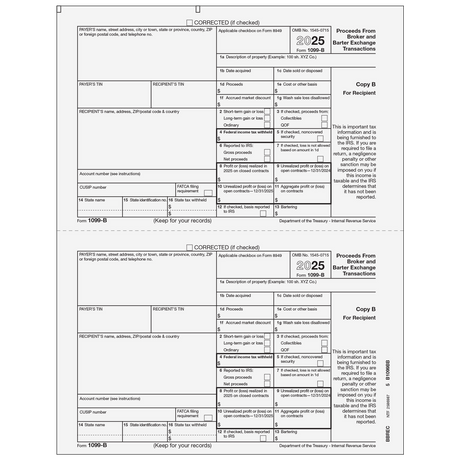 Regular price $3.84Unit price /UnavailableForm 1099-B Proceeds From Broker and Barter Exchange Transactions - Copy B Recipient - 25 Qty