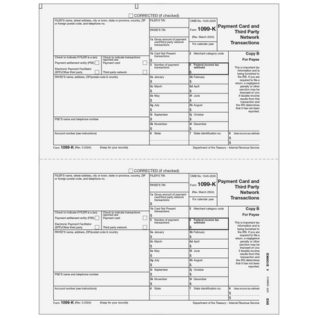 Regular price $3.84Unit price /UnavailableForm 1099-K Payment Card and Third Party Network Transactions - Copy B Payee - 25 Qty