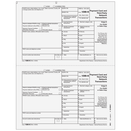 Regular price $0.00Unit price /UnavailableForm 1099-K Payment Card and Third Party Network Transactions - Filer State Copy C - 25 Qty
