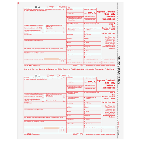 Regular price $3.84Unit price /UnavailableForm 1099-K Payment Card and Third Party Network Transactions - Copy A - 25 Qty