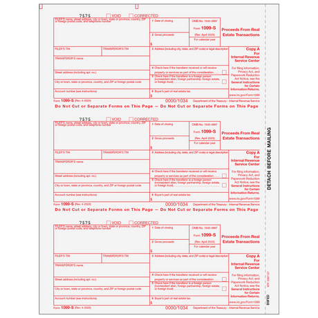 Regular price $3.84Unit price /UnavailableForm 1099-S - Proceeds from Real Estate Transactions - Copy A Federal - 25 Qty