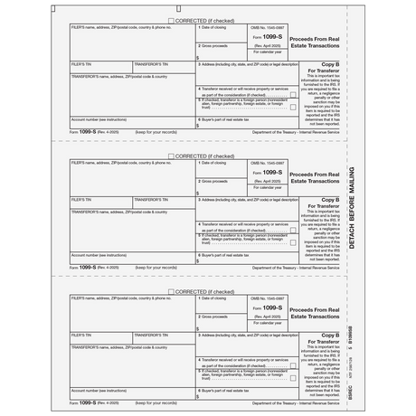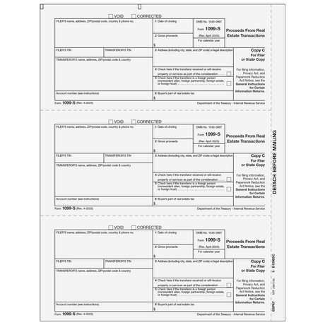Regular price $3.84Unit price /UnavailableForm 1099-S Proceeds From Real Estate Transactions - Copy C Filer or State - 25 Qty
