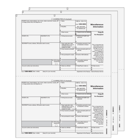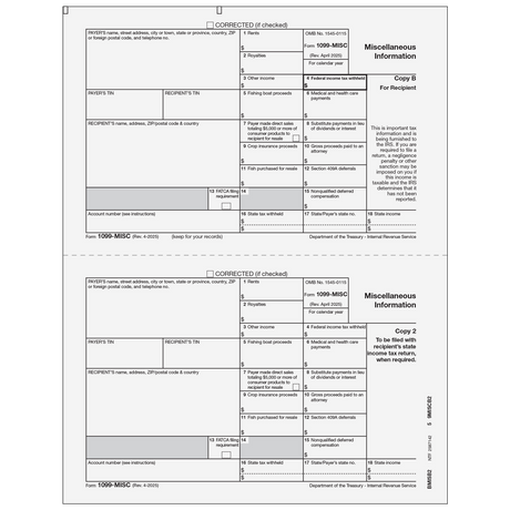 Regular price $19.44Unit price /Unavailable1099-MISC Miscellaneous Information - Recipient Copies B/2 - 25 Qty
