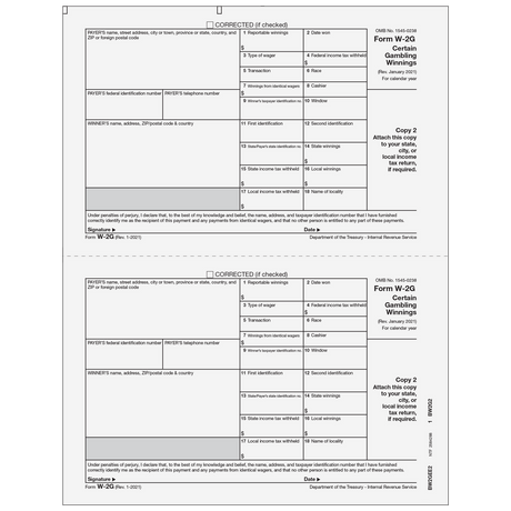 Regular price $92.49Unit price /UnavailableW-2G Certain Gambling Winnings, Winner State, City, Local, Copy 2 - 25 Qty