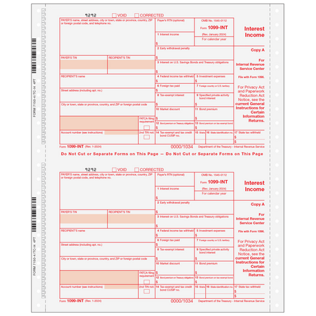 Regular price $3.84Unit price /UnavailableForm 1099-INT Interest Income 4-part (Carbonless) - 25 Qty