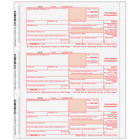 Regular price $92.49Unit price /UnavailableForm 1099-NEC Non-Employee Compensation, 5-Part (Carbonless) - 25 Qty