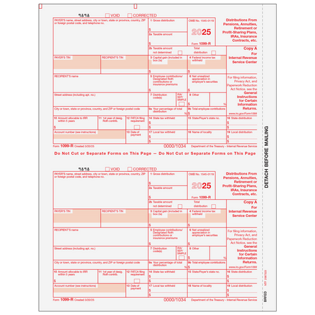 Regular price $19.44Unit price /UnavailableForm 1099-R Distributions From Pensions, etc. - 6-part Set (Preprinted) - 25 Qty