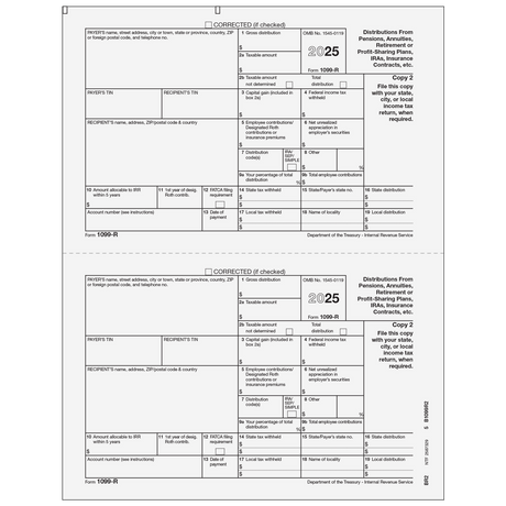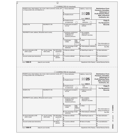 Regular price $15.60Unit price /UnavailableForm 1099-R Distributions from Pensions, etc. - Copy C Recipient - 25 Qty