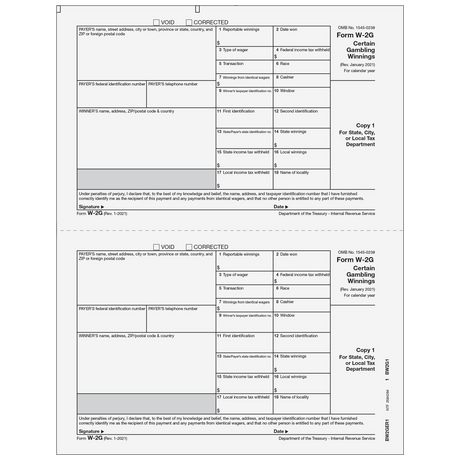 Regular price $3.84Unit price /UnavailableForm W-2G Certain Gambling Winnings, Payer State, City, Local, Copy 1 - 25 Qty