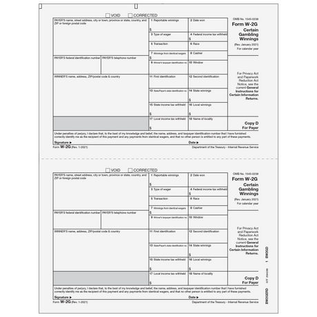 Regular price $3.84Unit price /UnavailableForm W-2G Certain Gambling Winnings, Payer Copy D - 25 Qty