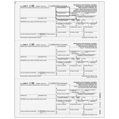Regular price $40.14Unit price /Unavailable1099-R Distributions from Pensions, etc. - 3-part Set (Blank Copies) - 25 Qty