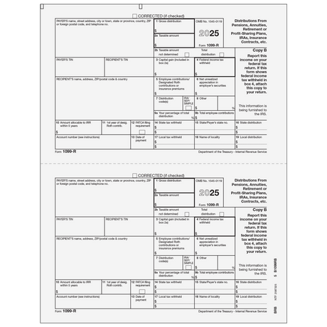 Regular price $19.44Unit price /UnavailableForm 1099-R Distributions From Pensions, etc.- Copy B Recipient - 25 Qty