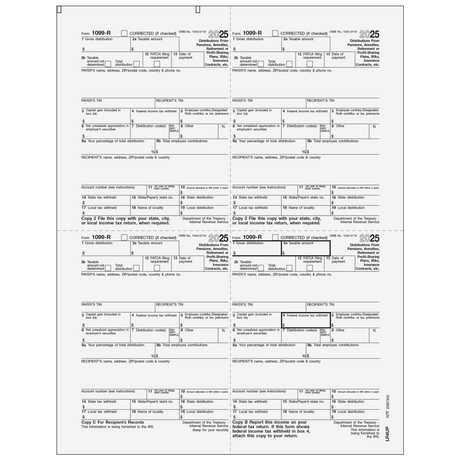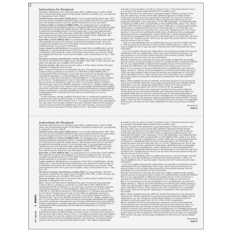 Regular price $3.84Unit price /UnavailableForm 1099-R Distributions From Pensions, etc. - Recipient Copy 4up Quadrant