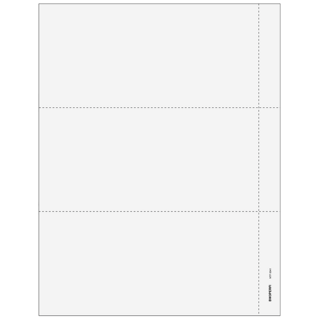 Use this blank laser paper to print 3 employee W-2 copies. Employee instructions cover all 3 back panels for easy legibility. Two horizontal perforations and a 3/4" right hand side perforation. 20# laser paper. Order by the number of sheets needed.